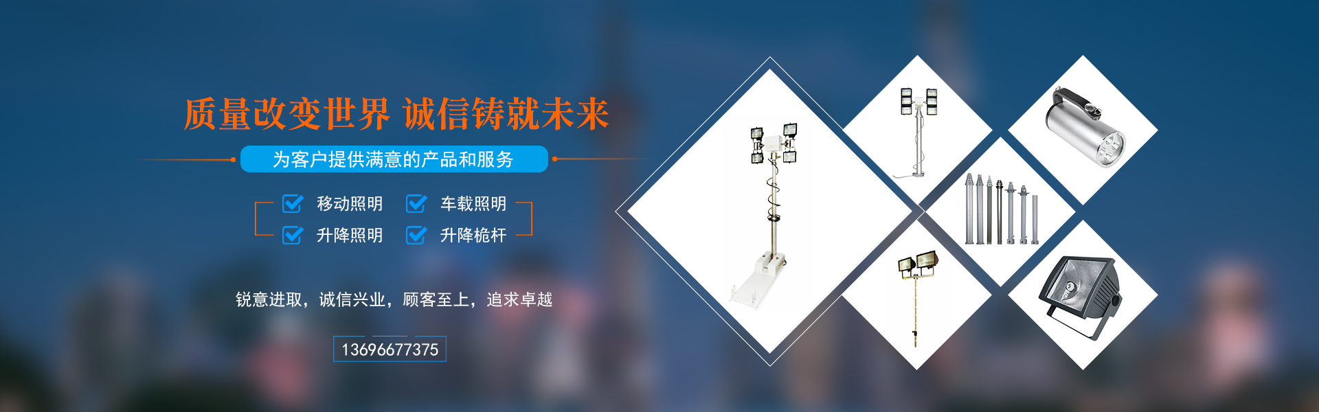 主营:移动照明灯组、车载应急照明灯、车载升降照明系统、遥控搜索灯、升降桅杆